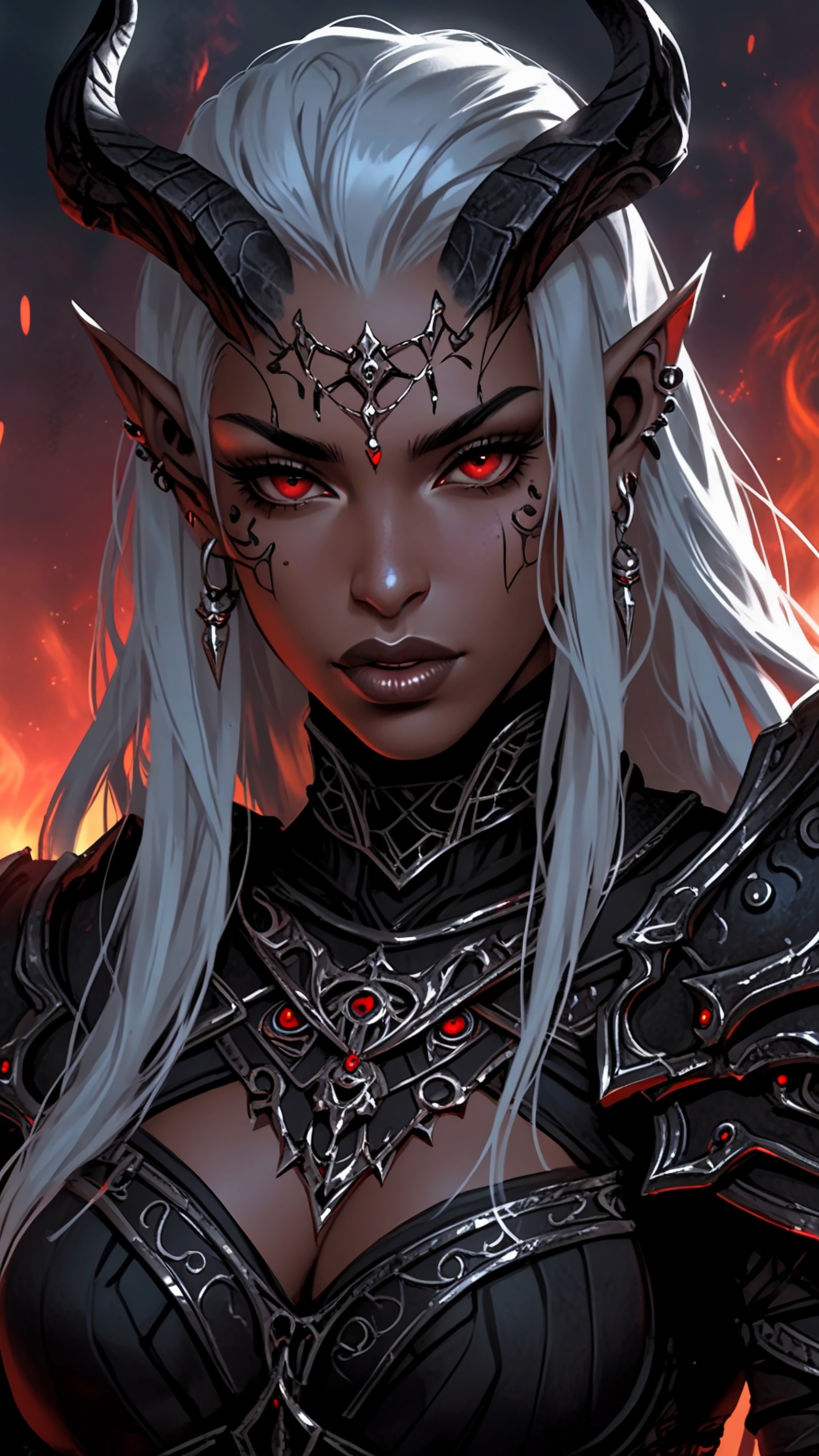 Download this stunning dark elf warrior in fiery armor wallpaper in HD. Perfect for desktops, tablets, and smartphones. Free to use.