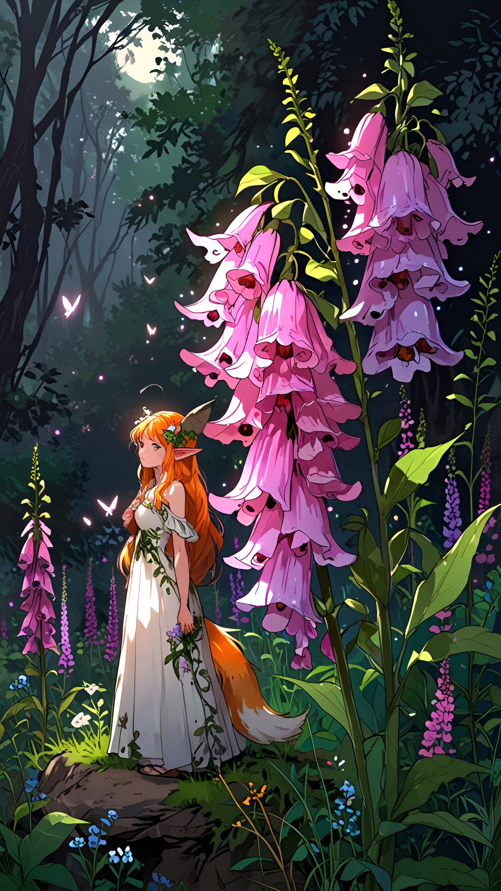 Download WallpaperMagical Forest Maiden Among Blossoming Flowers Wallpaper