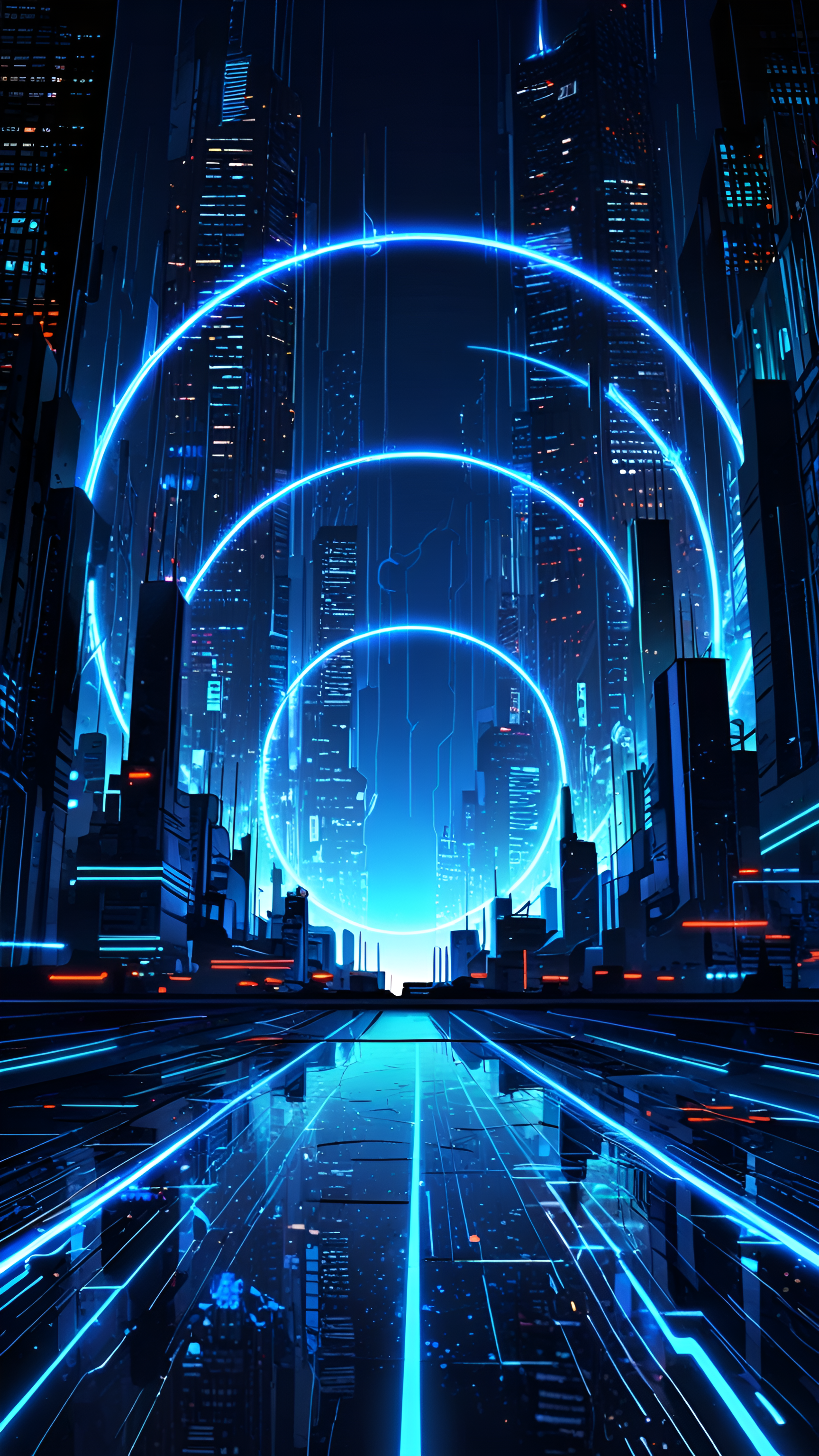 A stunning cyberpunk cityscape with neon blue data streams forming a portal. High-contrast vibrant colors against a dark background create a mesmerizing effect. A stunning cyberpunk cityscape with neon blue data streams forming a portal. High-contrast vibrant colors against a dark background create a mesmerizing effect.