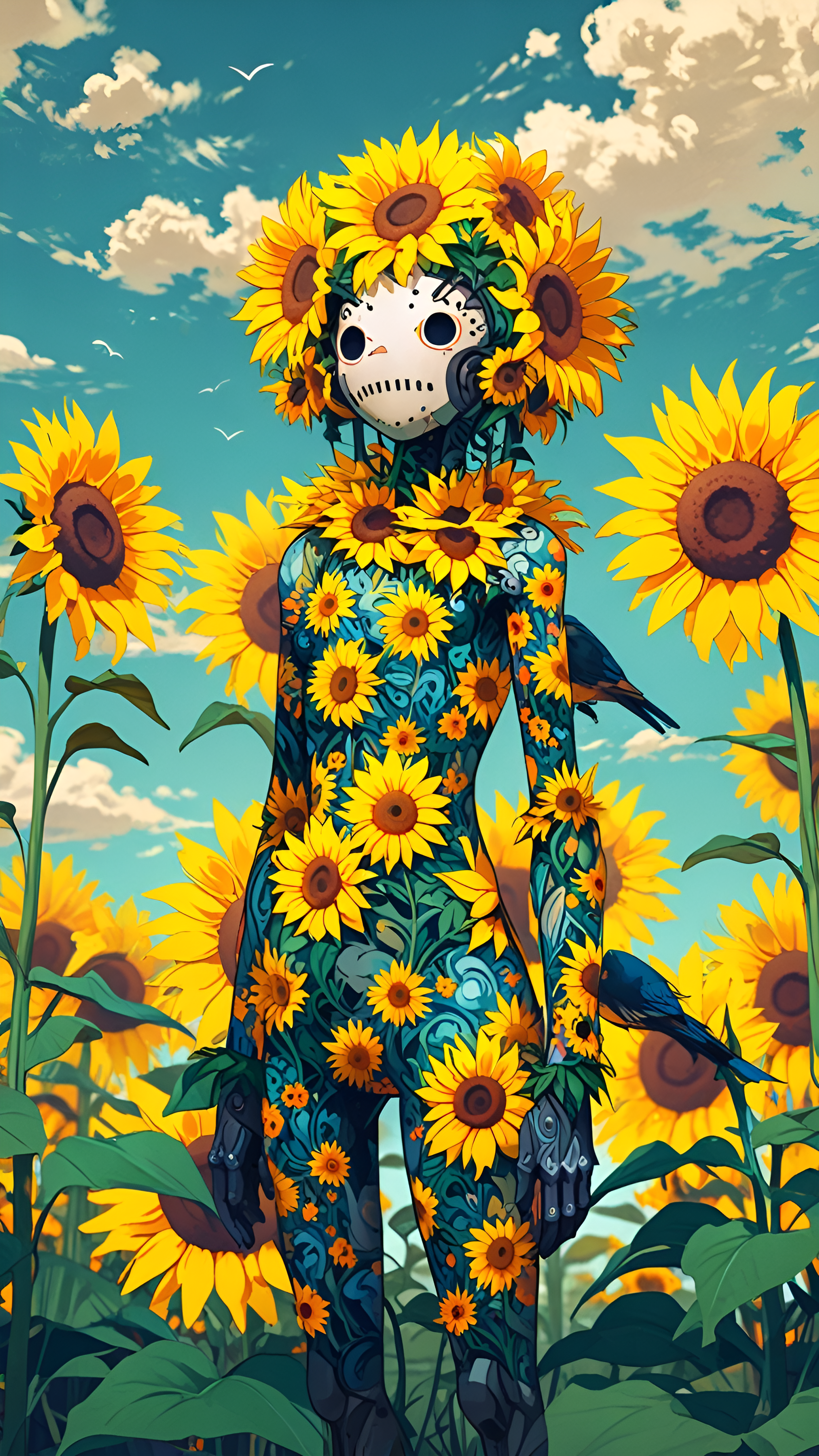 Embrace the serenity of nature with this unique Sunflower Guardian wallpaper, perfect for those who love whimsical and vibrant desktop backgrounds.