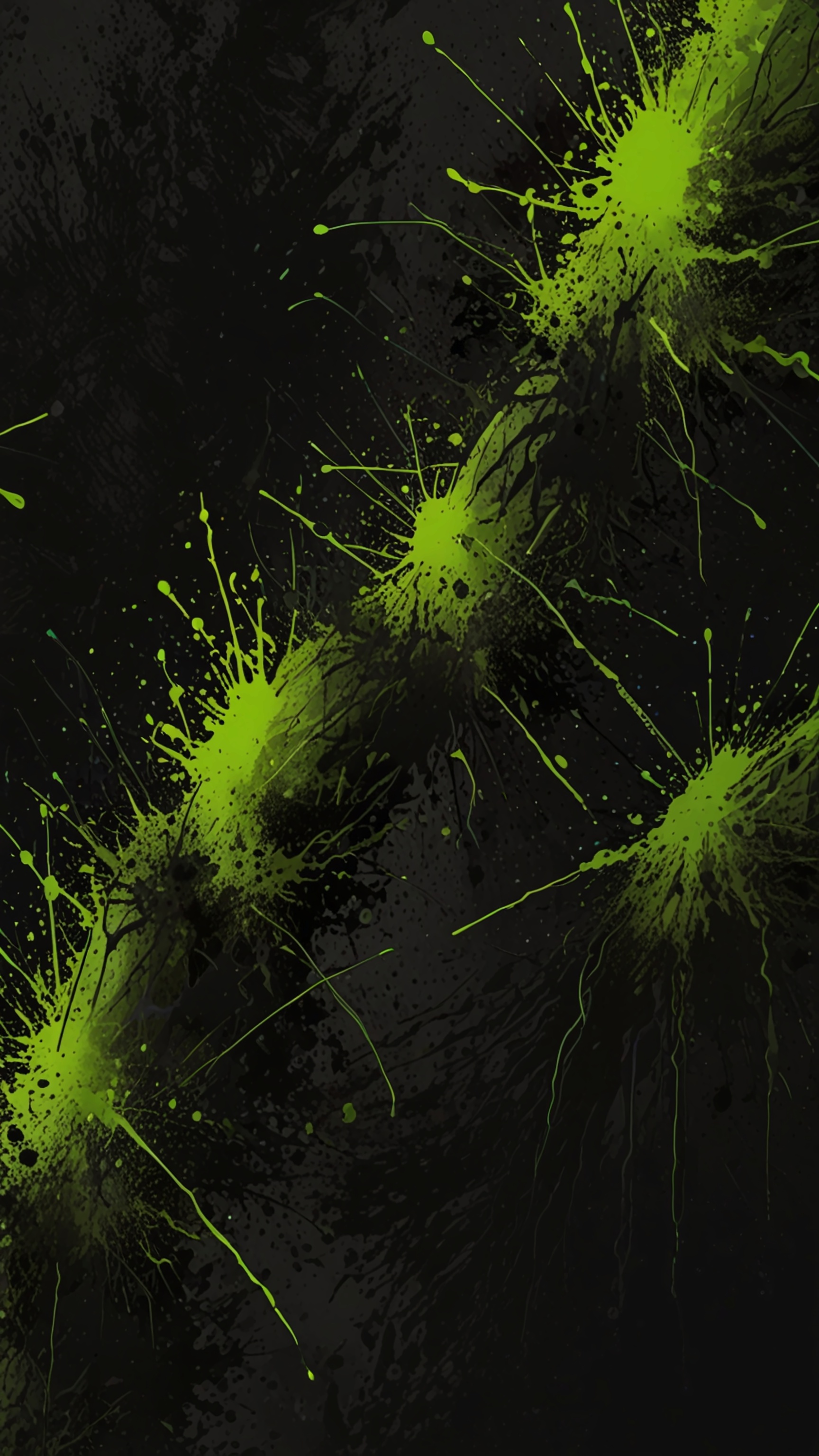 Vibrant lime green energy bursts flow across a deep charcoal background, creating dynamic abstract waves with striking contrast and a sense of depth and motion.
