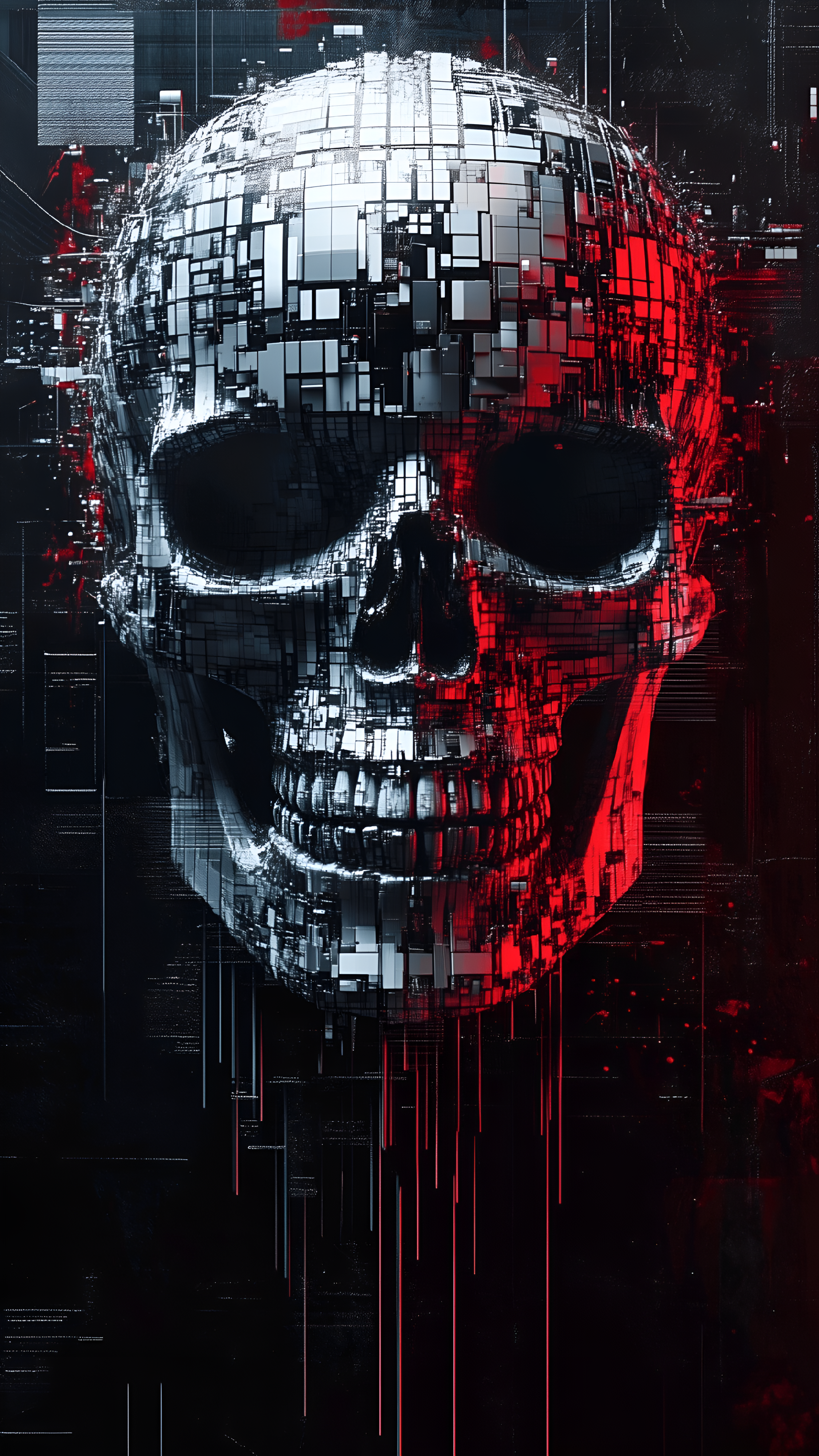 Transform your digital space with this captivating wallpaper featuring a futuristic abstract design characterized by a dark color palette and striking red accents. The intricate patterns and textures create a sense of depth and complexity, evoking a high-tech, cybernetic atmosphere. Perfect for tech enthusiasts and fans of modern art, this wallpaper serves as an eye-catching backdrop for your devices, inspiring creativity and innovation. Whether used for a desktop or mobile background, this design adds a bold and contemporary touch to any screen.