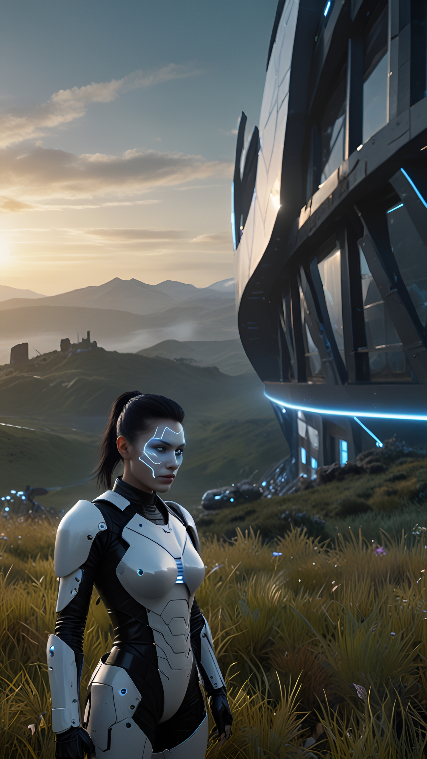 Step into the future with this captivating wallpaper featuring a futuristic warrior clad in sleek, high-tech armor. Set against a stunning backdrop of rolling hills and a modern architectural marvel, this image captures the essence of advanced technology and exploration. The character's design, combined with the vibrant environment, creates a sense of adventure and innovation, making it perfect for fans of sci-fi and futuristic aesthetics. Ideal for desktops, laptops, tablets, and smartphones, this wallpaper brings a dynamic and inspiring atmosphere to your digital space.