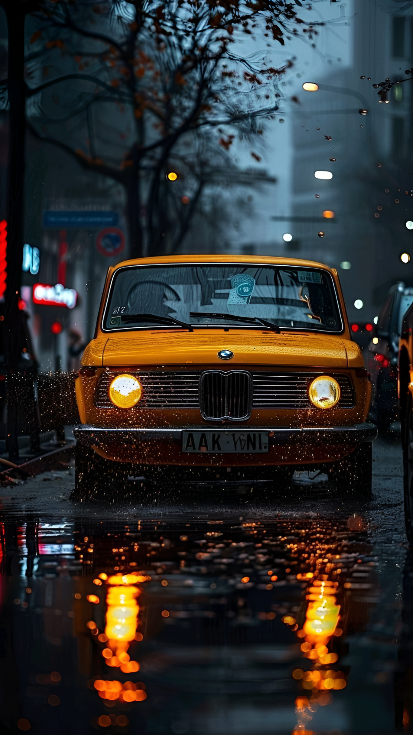Experience the charm of urban life with this striking wallpaper featuring a vibrant yellow car navigating through a rainy city street at night. The reflections of city lights shimmer on the wet pavement, creating a mesmerizing effect that enhances the lively atmosphere. This captivating scene captures the essence of a bustling metropolis, where the colors pop against the moody backdrop of rain-soaked streets. Perfect for car enthusiasts and lovers of cityscapes, this wallpaper adds a touch of energy and excitement to your digital space. Ideal for desktops, tablets, or smartphones.
