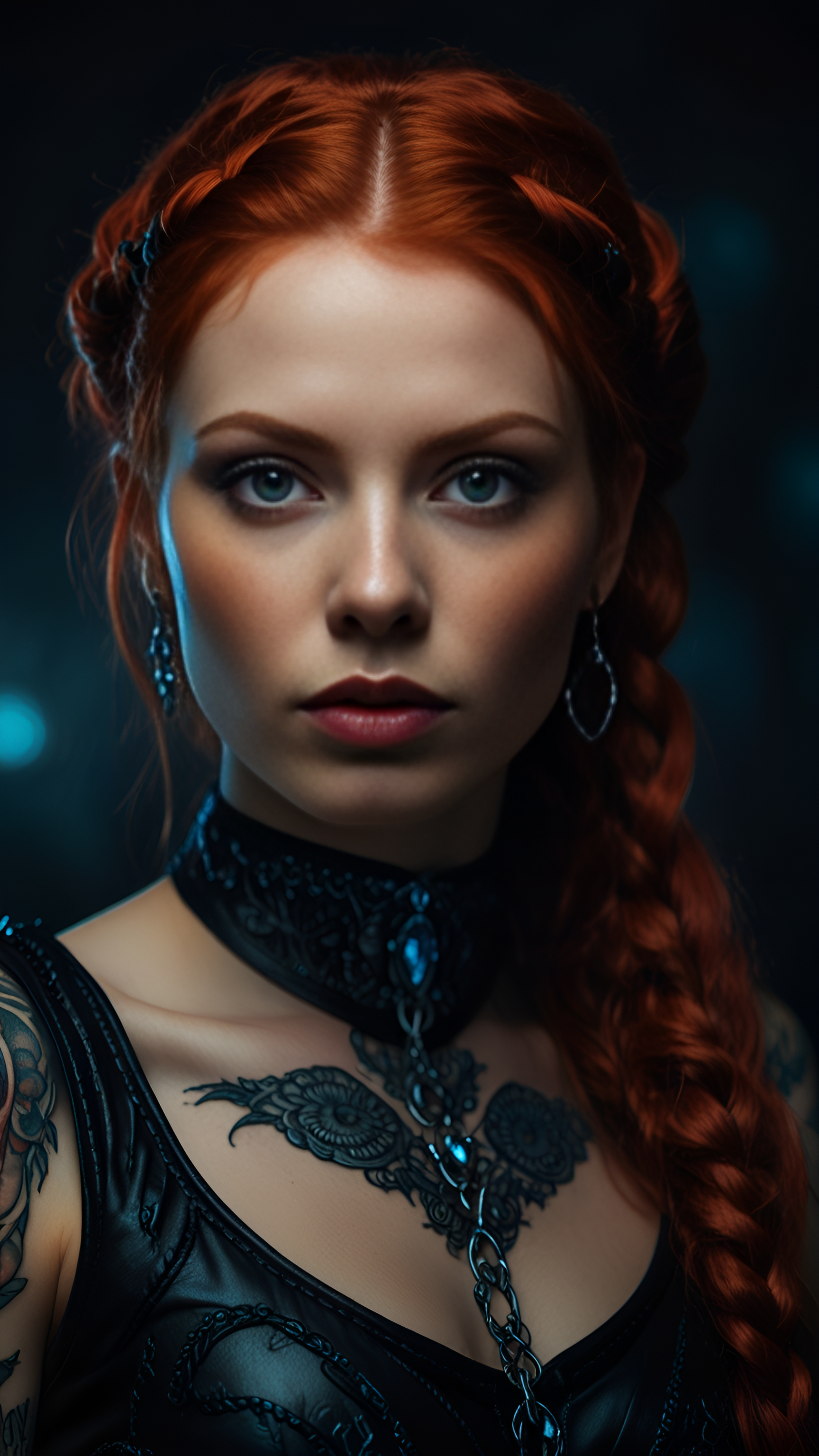Step into a world of fantasy with this captivating wallpaper featuring a mystical warrior adorned with intricate tattoos and a stunning dark outfit. The character's fiery red hair is beautifully braided, adding to the enchanting allure of the image. The detailed tattoos, accentuated by the contrasting textures of the leather attire, create a powerful and mesmerizing presence. Perfect for fans of fantasy art and character design, this wallpaper brings an air of mystery and strength to any digital space. Ideal for desktops, laptops, tablets, and smartphones, it adds a touch of magic to your screen.